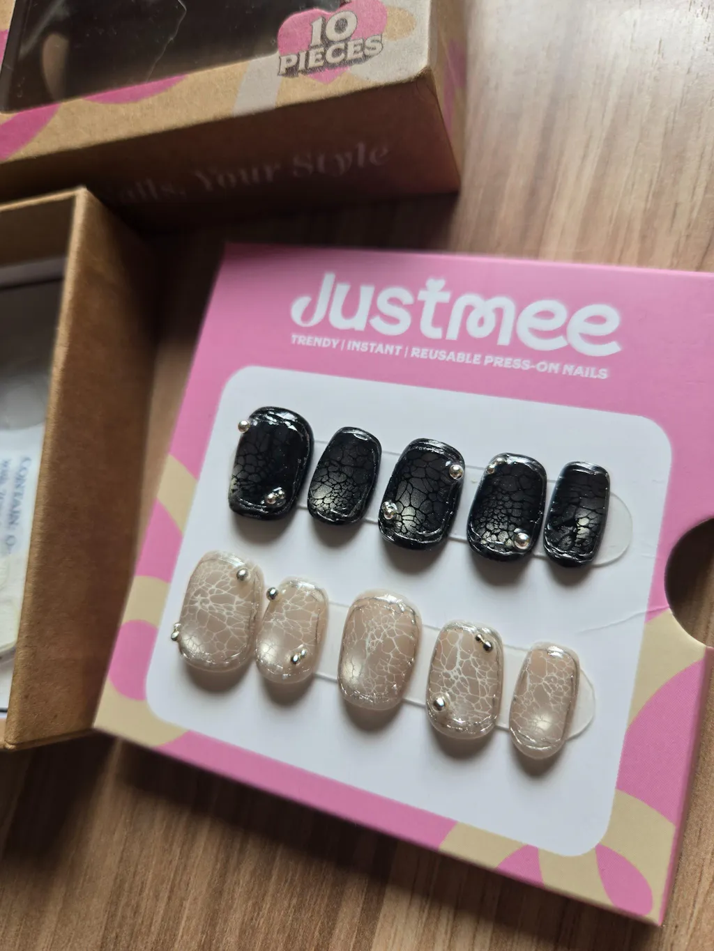 I love these press-on nails. I’ve tried some from another major brand before, and the ones from JustMee are much higher quality and have prettier designs. They were easy to apply and remove. I wore them for 5 days, and I think they would have lasted even longer. The size I ordered fit perfectly. I’ll definitely be ordering from here again :)